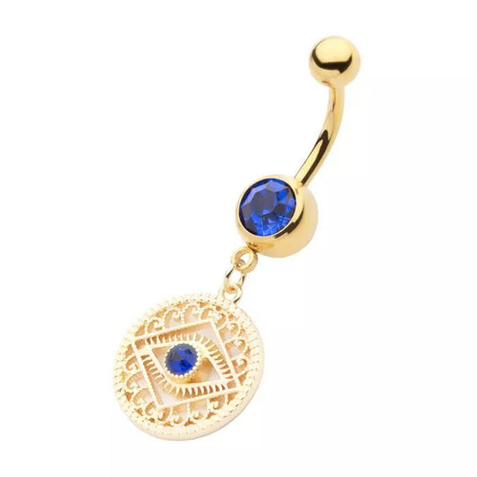 14g Bezel Set Evil Eye & Sunburst Dangle Navel Ring