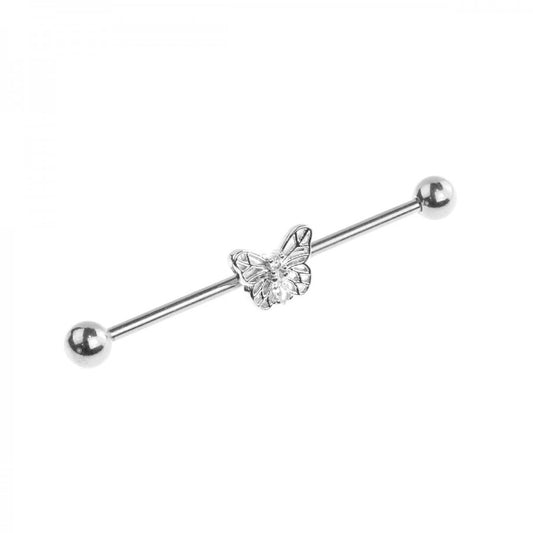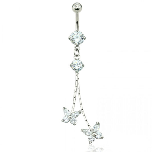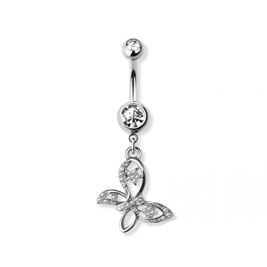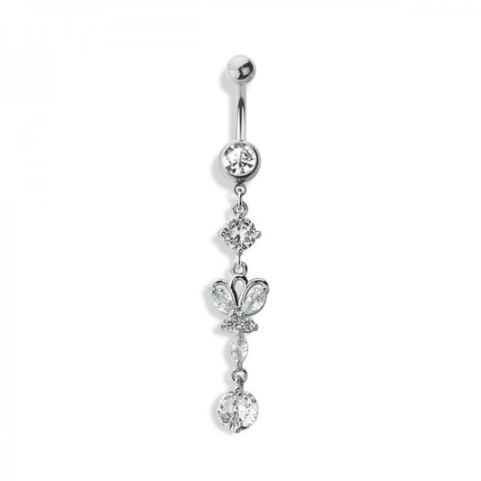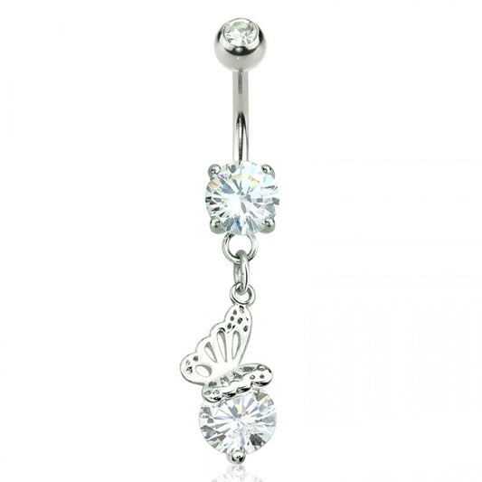 14g Butterfly On Cubic Zirconia Dangle Navel Ring