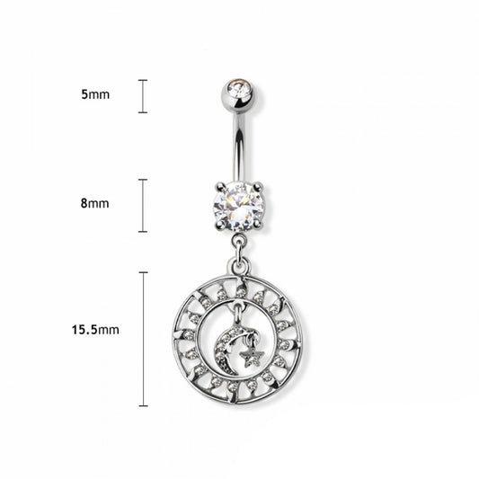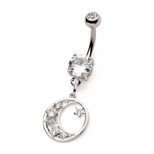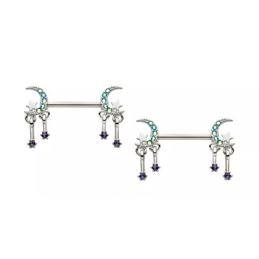 14g Multigem Moon & Star Dangle Nipple Barbell - Pair