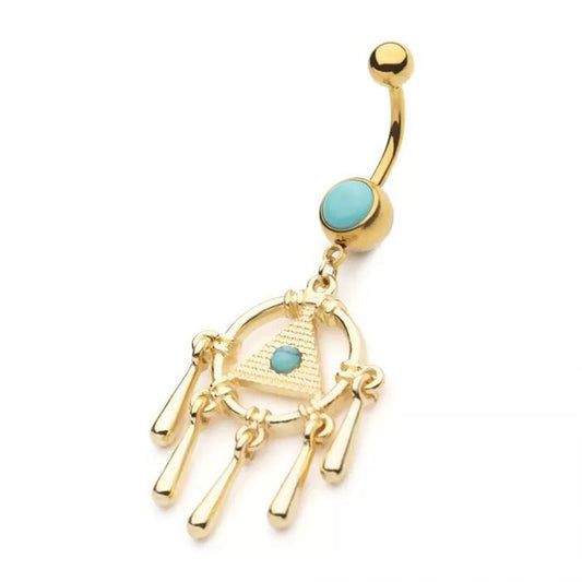 14g Pyramid & Turquoise Gemstone Dangle Navel Ring