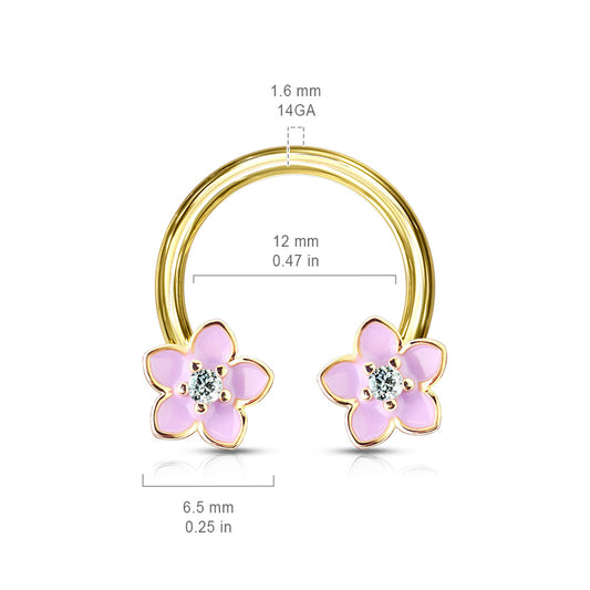 14g Pink Enamel Flower Nipple Horseshoe - Single