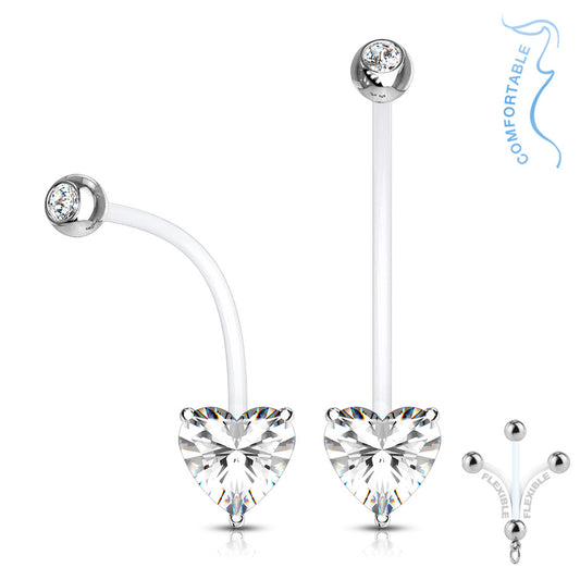 14g Prong Set Heart Bioflex Maternity Navel Ring