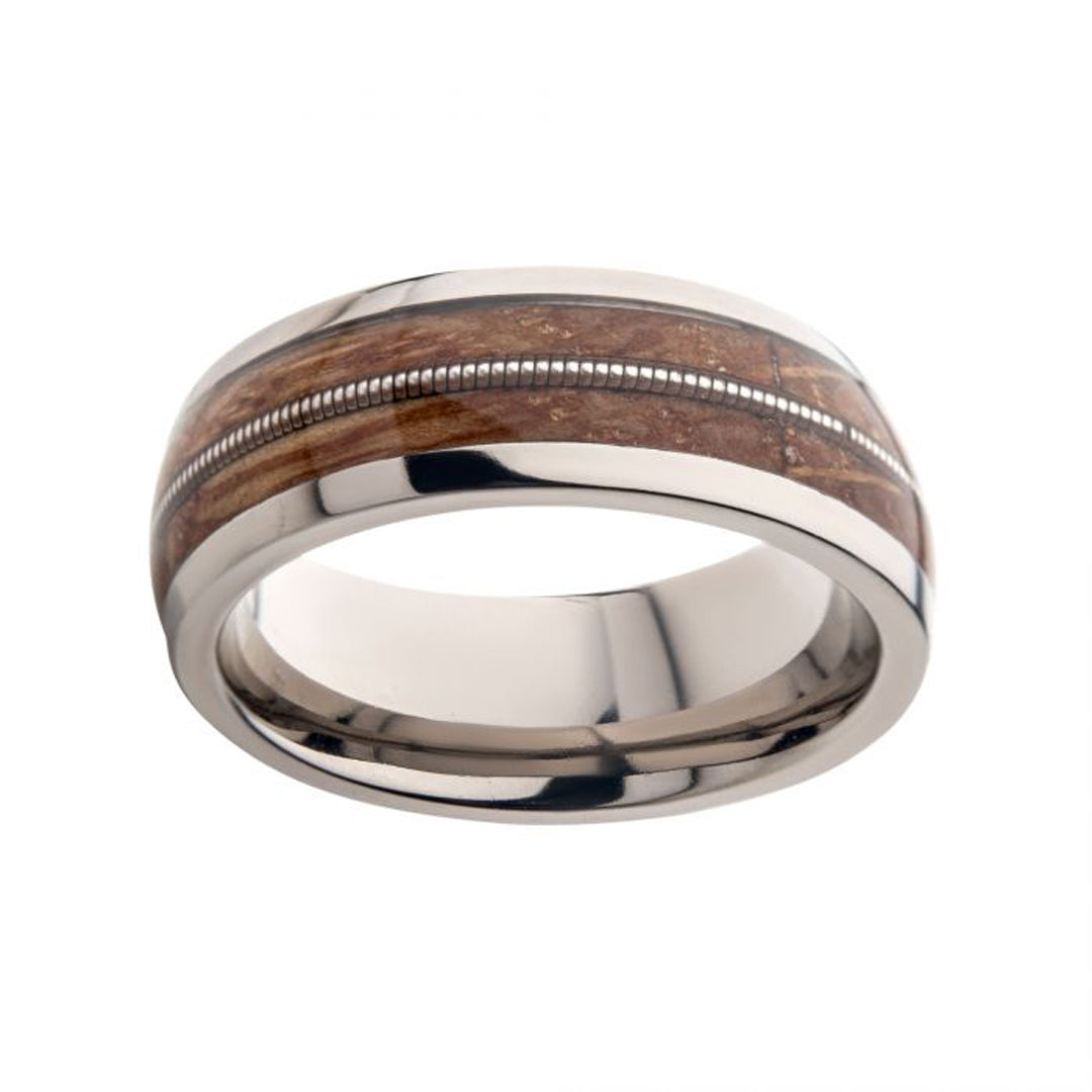 Clear Resin & Whiskey Barrel Wood Inlay Titanium Ring