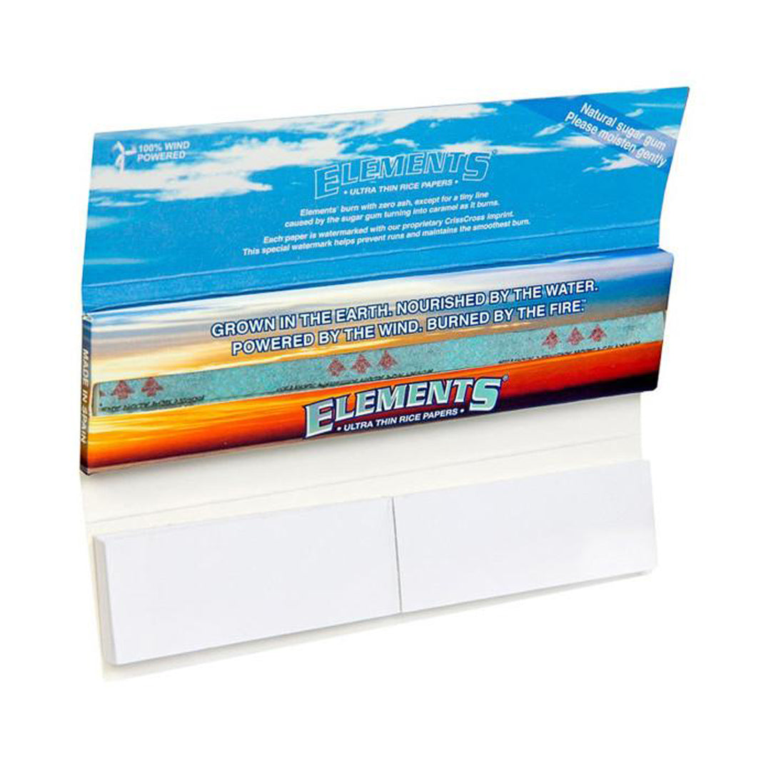 Elements King Size Connoisseur Rolling Papers are made from pure rice paper and then pressed to make them ultra slow burning and incredibly thin. They are watermarked with a proprietary criss-cross imprint that prevents runs and maintains a smooth and even burn. Elements Rolling Papers seal with a natural gum from the Acacia Tree.