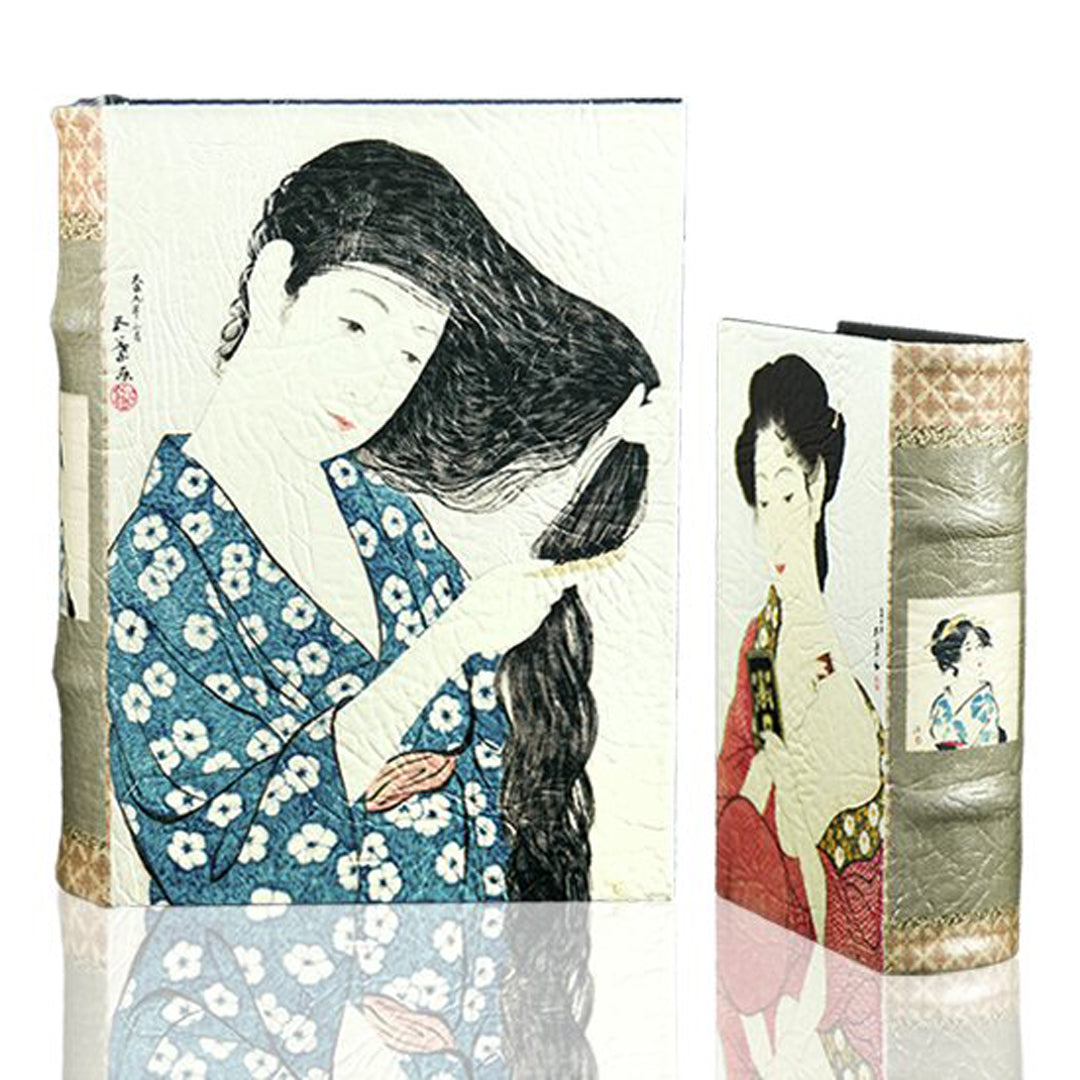 Stash book featuring two individual wood block prints by Hashiguchi Goyo (1880-1921). On the cover we have "Kamisuki (Woman Combing her Hair)" and on the back, "Kessho no Onna (Woman Applying Makeup)".
