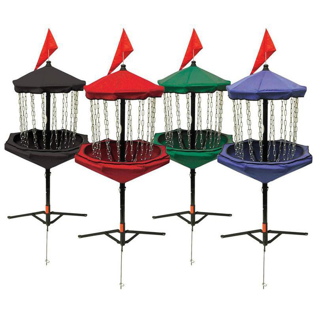 The Innova Skillshot Goal is built for action. Weighing in at a very portable 24 pounds, and folding to the size of a golf umbrella, the Skillshot is the most portable target in disc golf. It even comes with a flag for reading the wind and its very own carry case. It has a sturdy tripod base that means it can be mounted on hillsides or on the flat, allowing more flexibility than flat based targets. The Skillshot also has 16 real chains and is approved by the PDGA for tournament play.
