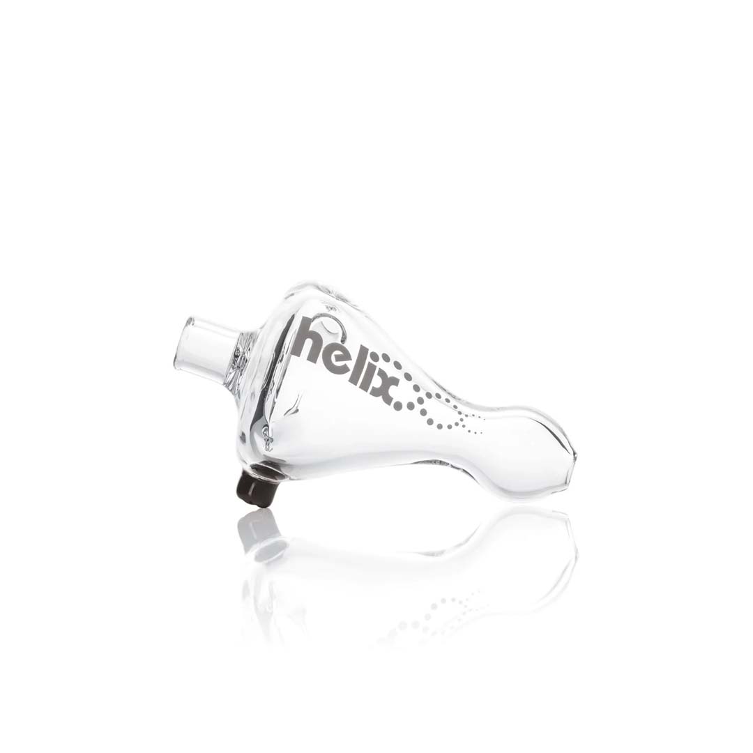 The Helix Chillum is 3" long and made of 19mm tubing. Its compact taster head is fused to a Venturi chamber mouthpiece, featuring three air intake holes that cool and spin smoke. A colored marble prevents the chillum from rolling between uses. No accessories or water are necessary for using this hand pipe.