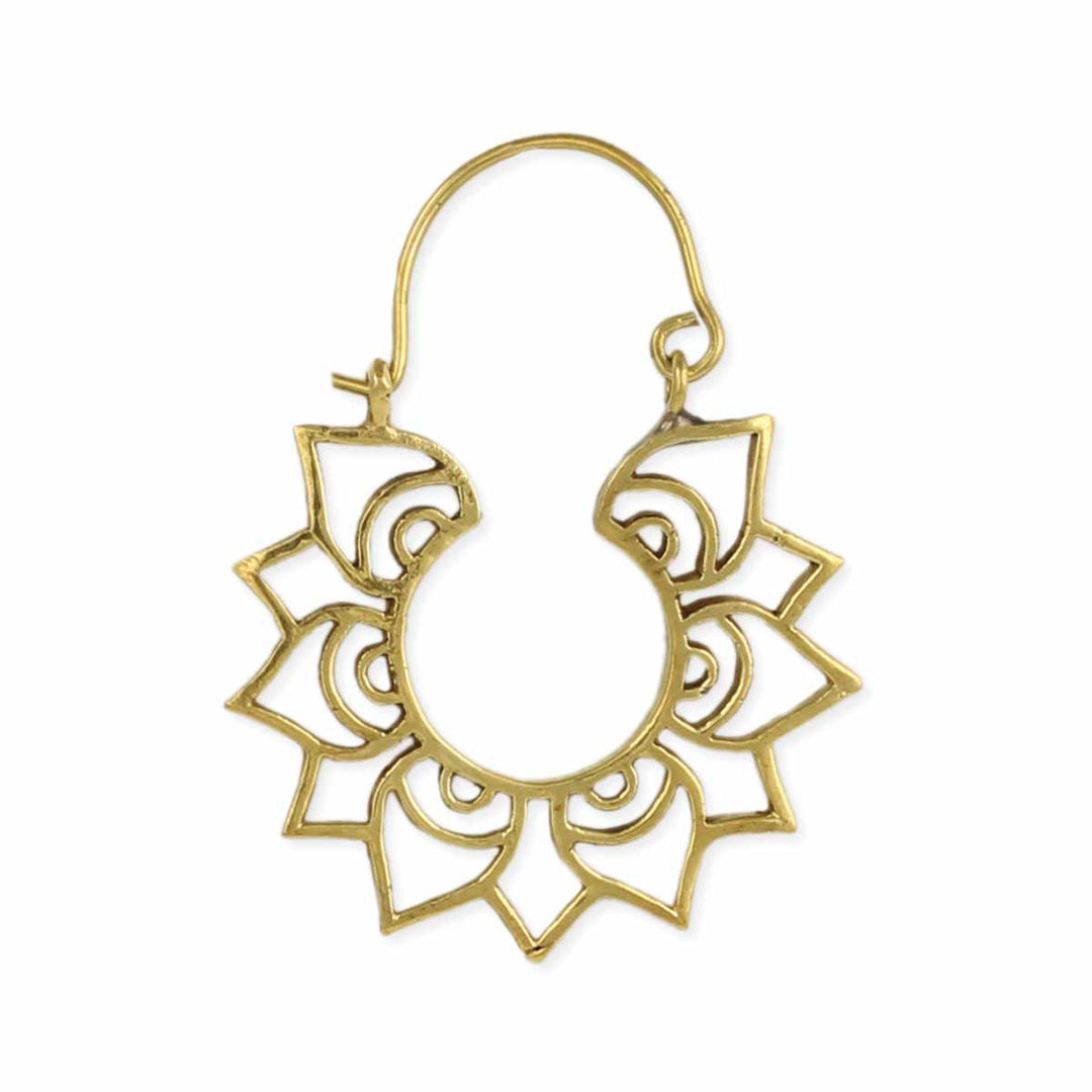 Say your mantras in style with this beautiful lotus mandala gold hoop earring. Simplistic filigree radiating design makes this lotus hoop an easy everyday earring while the mandala pattern lends a meaningful spiritual inspiration.