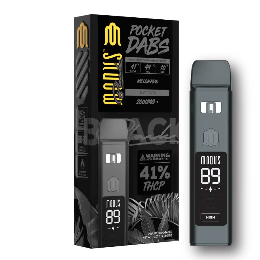 The Modus Black Pocket Dabs Vape is here, a compact powerhouse of premium concentrates for the seasoned enthusiast. This sleek and discrete disposable vape packs a potent punch with its premium blend of cannabinoids, including 41% THC-P.