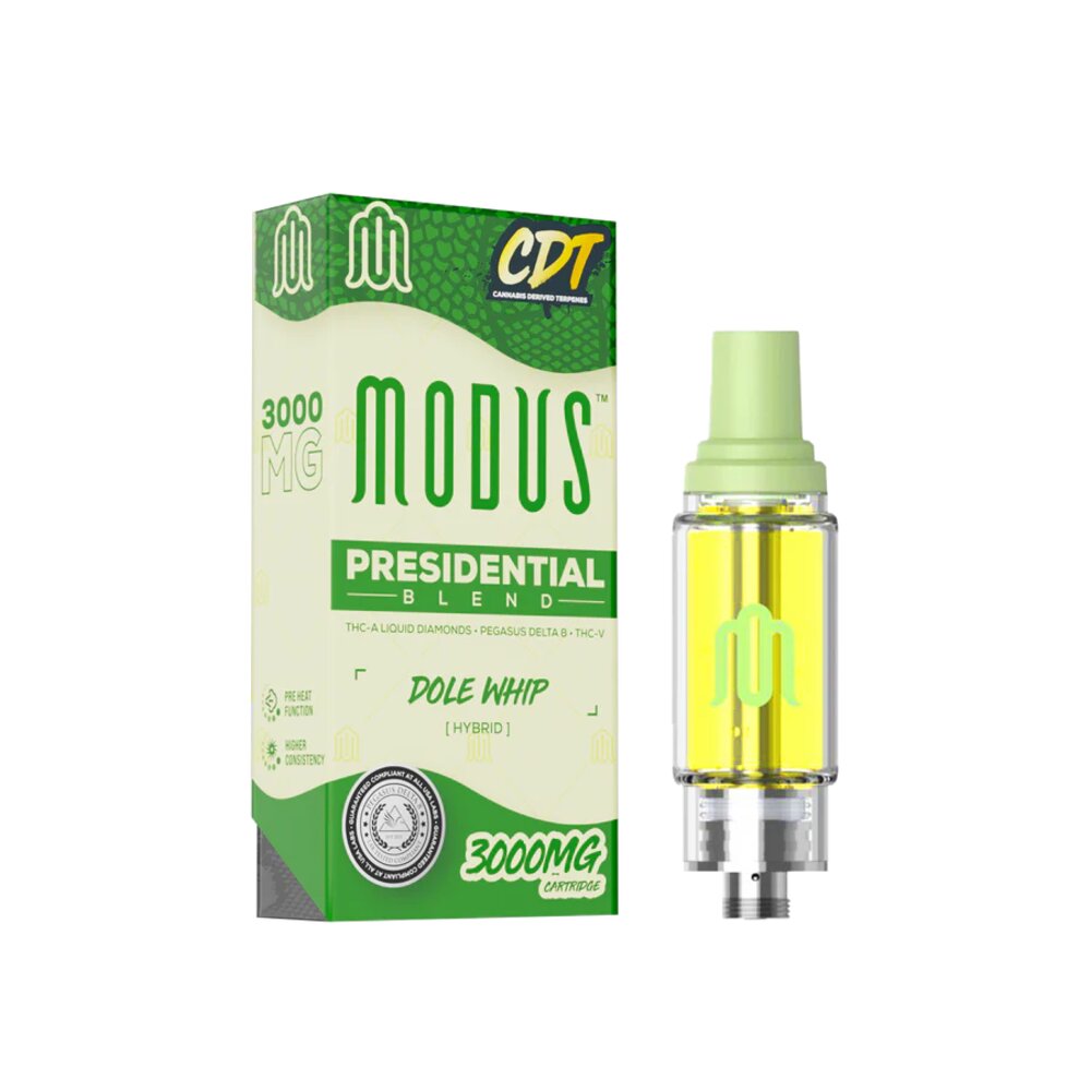 Introducing the Modus Presidential Blend, an opulent symphony of cannabis excellence that transcends the ordinary. Our meticulously crafted blend features the pinnacle of cannabinoids, including THC-A Liquid Diamonds, Pegasus Delta 8, THC-V, and CDT, creating an unparalleled experience for the cannabis connoisseur.