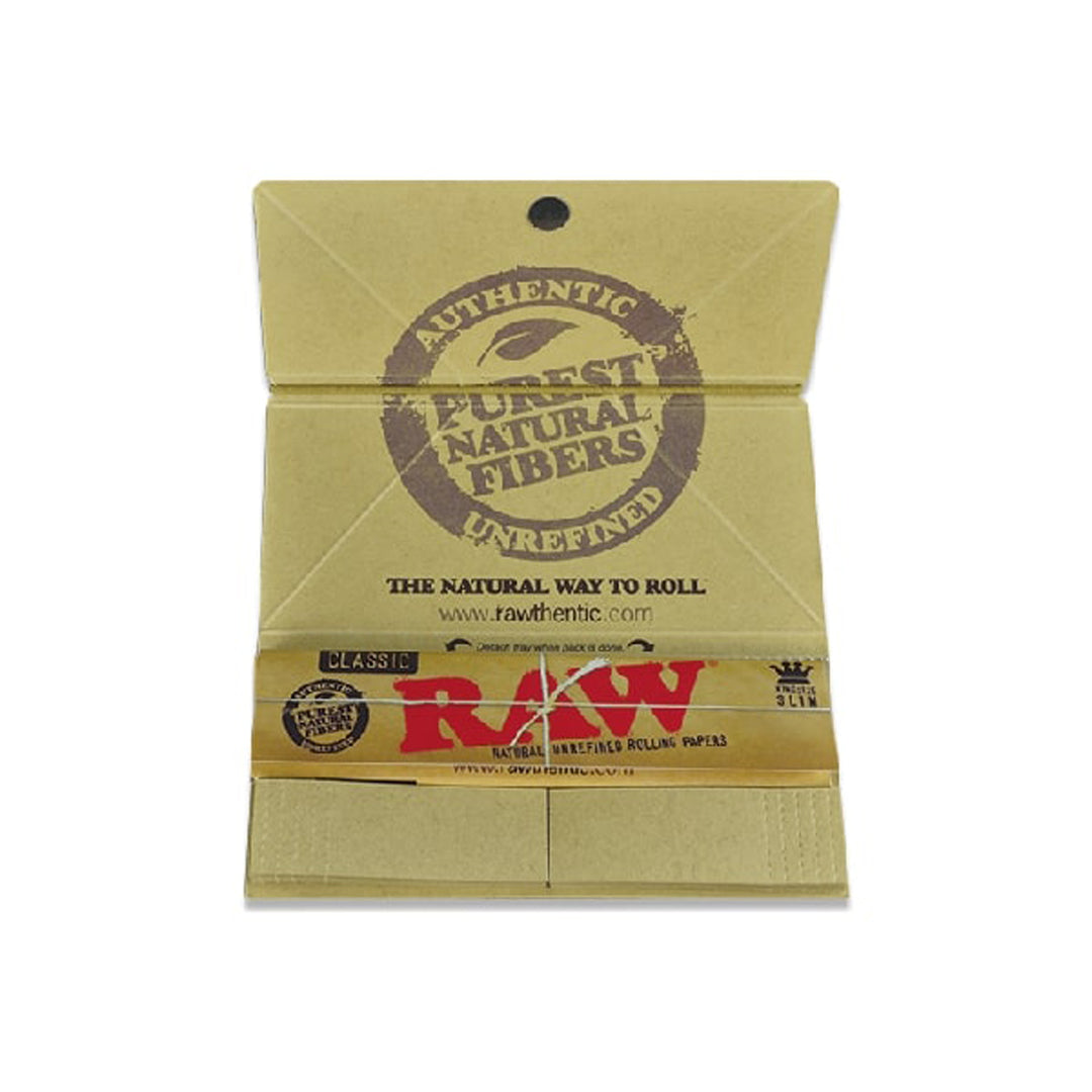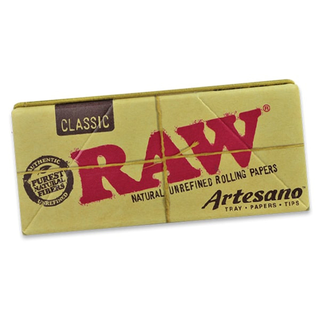 Raw Classic King Size Slim Artesano Rolling Papers contain a proprietary blend of natural unbleached plant fibers and are finished with a pure, natural vegan gum made from sustainably harvested sap from Acacia trees. King Size papers are great for those smokers who enjoy a longer smoke. The Artesano papers combines Raw's classic rolling papers with included tips and an innovative built-in rolling tray. Featuring a pocket-friendly design that's secured by magnets and a tray that's detachable for later use.