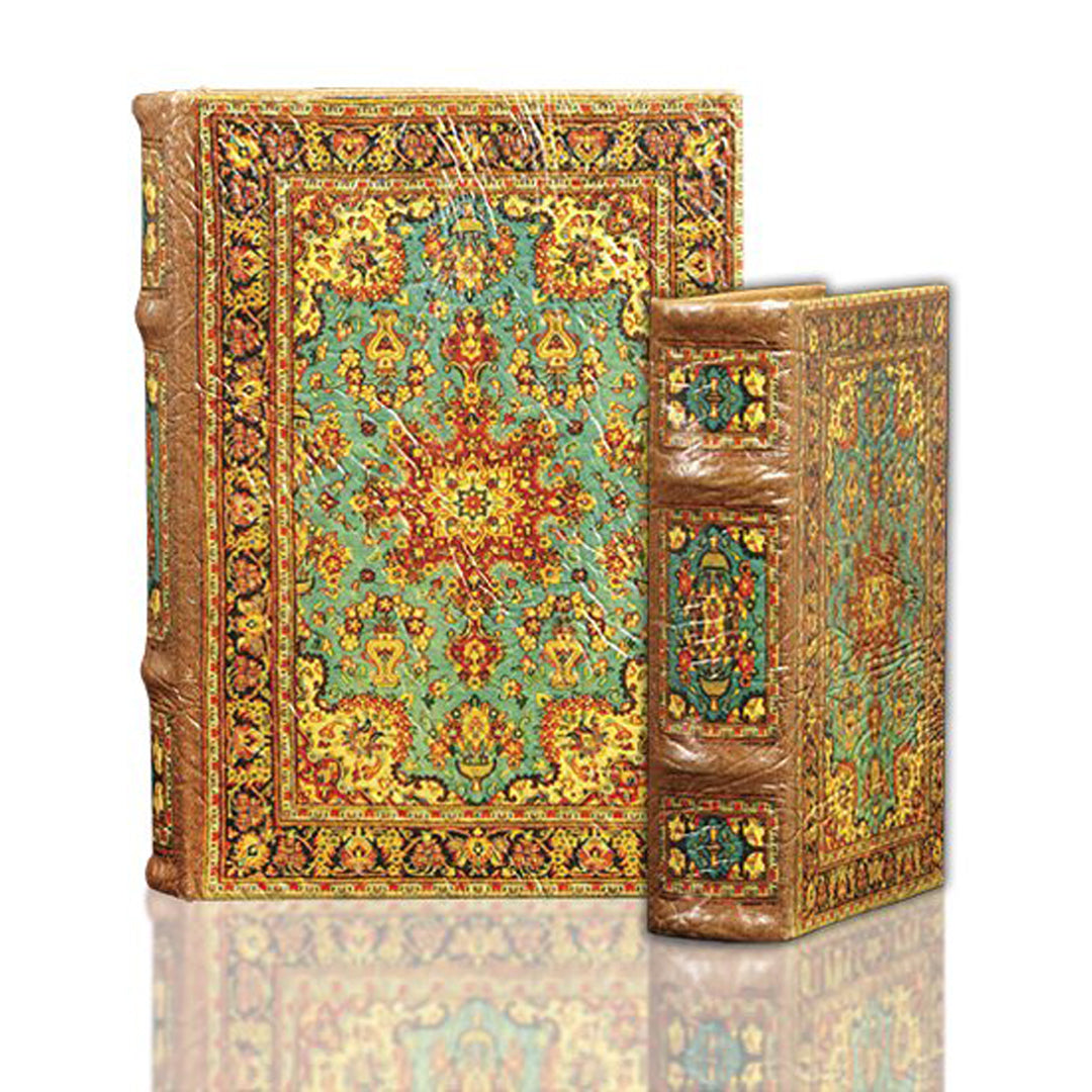Shangrila is a fictional place described in the 1933 novel "Lost Horizon" by British author James Hilton. This stash book features an arabesque tapestry pattern with harmonious colors offset by the turquoise center fill.